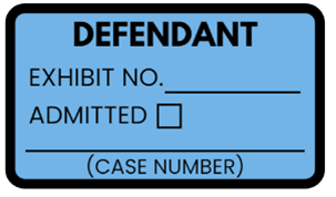 | Plaintiffs use the yellow stickers and label the exhibits using numbers: 1, 2, 3, etc. | Defendants use the blue stickers and label the exhibits using letters: A, B, C, etc. |